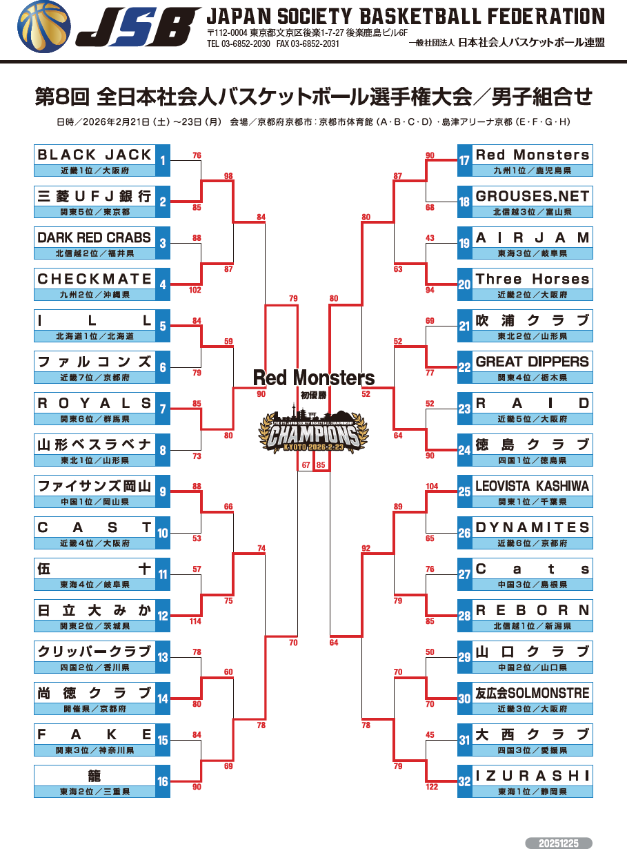 2026第8回 全日本社会人バスケットボール選手権京都大会_試合結果