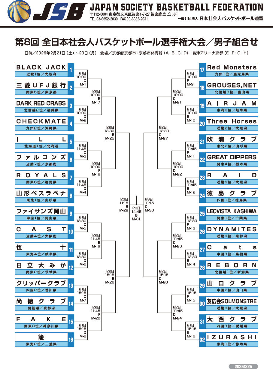 | 会場 | 京都市体育館∕〒- 京都府京都市右京区⻄京極新明町 島津アリーナ京都 (京都府⽴体育館)∕〒- 京都府京都市北区⼤将軍⻄鷹司町 |